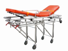 救护车担架符合病情需要,便于病人与伤员躺卧。因担架自身重量较重,搬运时费力。 担架的床面可按实 际操作要求调节成前倾或后倾状态 .床靠背采用可锁定式气动弹 簧支撑 ,可在0-60度范围内无级调节. 配置前后固定架,将担架车 安装在救护车上适当位置可锁定担架。