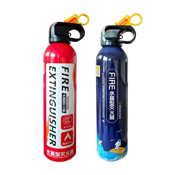MSWJ580型简易式水基型灭火器,是一种可携式的灭火器具,灭火器内放置了水系灭火剂,能在其内部压力的作用下,将所充装的灭火剂喷出用以扑灭火灾。具有灭火快速,抗复燃性强,灭火无死角,可灭高压电火(36kV),环保无毒等优点,适用于车辆、家庭、办公室等场景,可迅速扑灭固体火(A类火)、可燃液体火(B类火)、电器火(E类火)及厨房火(F类火)等初起火灾。