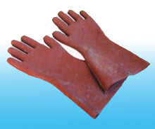 绝缘手套又叫耐高温手套,高压绝缘手套,是用天然橡胶制成,用绝缘橡胶或乳胶经压片、模压、硫化或浸模成型的五指手套,主要用于电工作业。绝缘手套是劳保用品,起到对手或者人体的保护作用,用橡胶、乳胶、塑料等材料做成,具有防电,防水、耐酸碱、防化、防油的功能。适用于电力行业,汽车和机械维修,化工行业,精密安装。