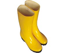 防化胶靴是消防员进入火场灭火时的脚部防护装备;胶靴底部内嵌钢板,具有防水和防穿刺功能,亦具备基本的隔热和绝缘功能。主要材料为橡胶、钢板。