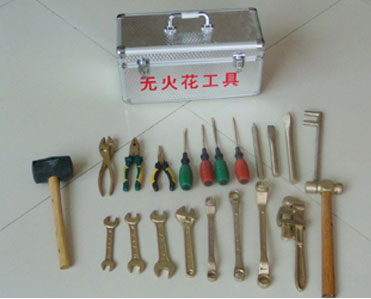无火花工具材质以铍青铜和铝青铜为原料,铍青铜合金、铝青铜合金在撞击或磨擦时不发生火花,十分适合用来制造在易爆、易燃、强磁及腐蚀性场合下使用的安全工具。 BeA-20C合金在含30%的氧或6.5-10%甲烷空氧中承受561IJ的冲击能,冲击20次,都未发生火花和燃烧。