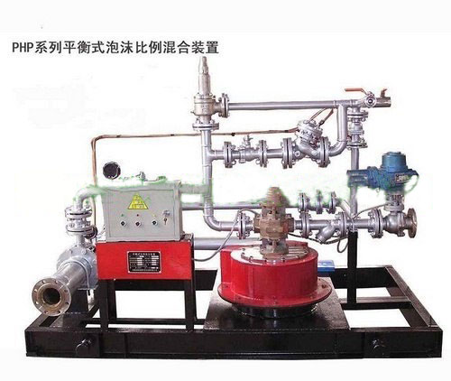 PHP(W-L)平衡压力式泡沫比例混合装置介绍: 泡沫消防系统中,大规模泡沫消防工程对泡沫混合液的供给源提出了更高的要求,传统的贮罐压力式泡沫比例混合装置有限的泡沫液供给量已越来越不适应现代大型泡沫消防工程的要求。PHP系列泵入平衡压力式泡沫比例混合装置(以下简称PHP)是向泡沫消防系统提供泡沫混合液的新型泡沫灭火装置,主要是用于石油化工、港口码头、油库、机场(库)、海上平台等场所的大中型泡沫消防系统。 应用优点 1采用常压、无囊、不锈钢(或玻璃钢、聚乙烯)泡沫液贮罐,避免了胶囊损坏造成的损失和较高的压力容器制造费用。 2、装置可适用于蛋白、氟蛋白、水成膜等任何泡沫灭火剂。 3、泡沫液可在装置灭火过程中添加,尤其适用于大中型泡沫消防工程。 4、压力平衡阀的动态调节保证了较为精确的混合比。 5、泡沫泵注入泡沫液的供给方式使得泡沫混合液工作压力和流量有较大的适应范围。、 6、操作简单,更容易实现自动化控制。 7、若采用水轮机驱动,无需电源,装置也能自动操作,属绝对本安型。 一、工作原理和基本组成: 火情发生时,压力水在流经压力比例混合器时,其中一部分压力水带动水轮机,启动泡沫液泵,将储存在常压容器内的泡沫液注入装置管路,经压力平衡阀的自动平衡调节作用,适量的泡沫业与压力水按比例自动混合成泡沫混合液。泡沫混合液被输送至泡沫产生器、泡沫枪、泡沫炮或其它泡沫设备,产生空气泡沫扑救甲、乙、丙类液体火灾。平衡压力式泡沫比例混合装置通过维持泡沫浓缩液和水进入比例混合器处的压力平衡, 从而使泡沫泡沫浓缩液和水按规定的比例混合。该装置由泡沫泵,压力控制压阀,平衡压力比例混合器,相关控制阀门,压力表及连接沫发生 管道组成。以上设备安装在一个钢制基座上,成撬块形式布置。 二、平衡压力式泡沫比例混合装置工作流程: 平衡压力式泡沫比例混合装置工作流程:泡沫泵从常压泡沫液储罐吸入泡沫液并加压输送到泡沫浓缩掖干管上接出平衡压力比例混合器来实现泡沫和水的混合,在泡沫浓缩液干管上接出回流管返回至常压泡沫液储罐。位于泡沫液浓缩回流管上的平衡控制阀调整供液管内的压力,使泡沫液的压力和水压保持平衡,双针压力表时刻显示泡沫浓缩液和水的压力。 PHP是通过水流和压力自动调节的独立的系统。系统一般安装在泡沫罐附近,通过管道与泡沫罐和消防压力水以及泡沫发生设备相连。火*发生时,泡沫泵启动,将与之相连的贮罐中泡沫*注入到比例混合器管路,经平衡阀和比例混合器调节,将一定比例的泡沫*注入到流经比例混合器的力水,并与其混合成泡沫溶液,然后输出到泡设备,如泡沫*、泡沫*等,产生空气泡沫扑救火灾。