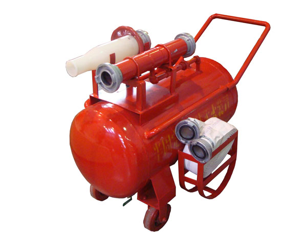 一、 移动式泡沫灭火装置的构成: 执行标准:GB20031-2005 半固定式泡沫灭火装置也叫推车式泡沫灭火装置,是新型移动式泡沫灭火装置,其操作迅速简便、可靠性强,用于扑灭甲、乙、丙类非水溶性液体火灾。被广泛用于市政住宅区、厂矿企业、油库、化工部门、热处理车间、加油站,大小型船舶等场所,主要由泡沫液储罐、喷枪、比例混合器、水带、及推车手柄和底轮等构成。