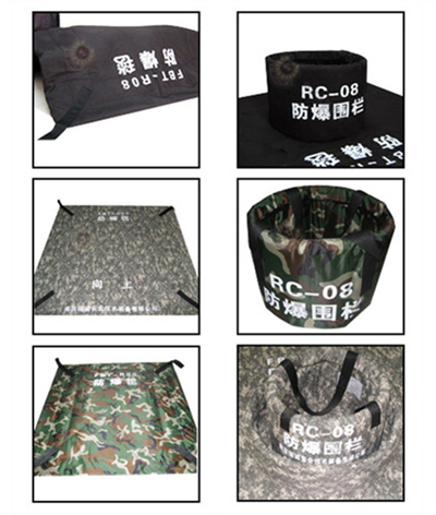 防爆围栏产品特点: 防爆毯,防爆围栏具有质轻,携带方便,操作简单,抗爆性优等特点。用于@@@@@@的隔离,保护,要求防爆的装备:贵重仪器,文物档案和特殊公共场所。是公安,武警,民航,铁路,港口,海关等防爆必备的装备。我公司长期从事防弹、防爆产品研发生产。所生产的FBT-R08 1200mm×1200mm、1600mm×1600mm防爆毯(围栏),选用防破片性能优越的芳纶机织布为基本材料,采用特殊的缝制工艺保证对爆炸破片所产生能量的充分吸收。并于2008年按照最新防爆毯测试标准《GA69-2007》通过公安部特种警用装备质量监督检测中心的检测。