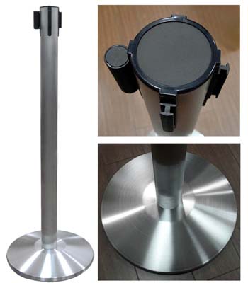 产品名称:一米线 产品编号:TH-GLZ-05 详细说明: 规格:Φ320*910mm 带子长度:2米/3米 带子颜色:红/蓝 材质:不锈钢 特点: 1、焊 接方面:采用现在最新的高频无缝焊接技术,使焊接点完美无缺; 2、布 带方面:布带采用德国进口编织机器编织,采用平纹编织法,能更好的展示公司形象标志,更加美观,更具品位; 3、伸缩头方面:伸缩头采用正规大公司设计制作的模具制造,摸上去手感光滑圆润没有任何毛刺; 4、底 座方面:,底盘附加橡胶防滑圈,可保护底座在移动过程中发出刺耳的声音并避免底座将地板划花; 5、拆 装方面:本产品由伸缩头、布带、杆身、底座组成,可自由拆卸组装,方便运输及携带。 广泛用于各银行、车站、医院、邮局、剧院、空港、机场、地铁、商场超市收款台现金交易场所保障客户财产 和信息安全,展览展示中心、酒店、俱乐部、会所、商务楼宇作为移动隔离防护系统,维持秩序,划分范围, 引导路线最佳的选择!